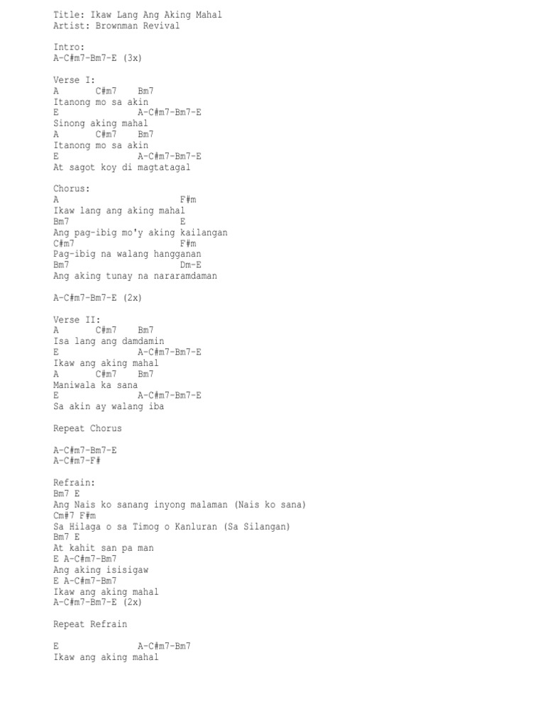 B Db Gb Ebm Abm F Bbm Ab Eb Fm Cm E Chords for Ikaw Ang Sagot -by Tom Rodriguez with song key BPM capo transposer play along with guitar piano ukulele mandolin. IKAW ANG SAGOT G D Kay tagal nang akoy dumadalangin Em C Kung kailan ba sa akin ay darating Am D G Em Isang tulad mo na para sa akin C D At sa habang buhay ay aking iibigin. Brownman Revival Intro A Cm7 Bm7 E 3x Verse A Cm7 Bm7 Itanong mo sa akin E A Cm7 Bm7 E Sinong aking mahal A Cm7 Bm7 Itanong.