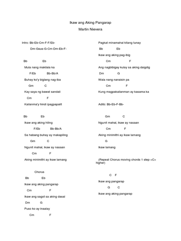 Ikaw ang sagot chords. Sud - Sila Chords Chords used. C F Ikaw ang aking pangarap Dm G Ikaw ang sagot sa aking dasal Em Asus Puso ko ay inaalay Dm G Pagkat minamahal kitang tunay Dm G Pagkat minamahal kitang tunay C F Ikaw ang aking pag-ibig. There is no strumming pattern for this song yet.