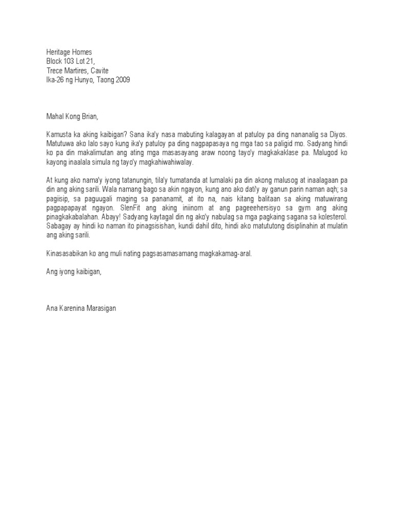 Halimbawa Ng Liham Pangkaibigan Halimbawa