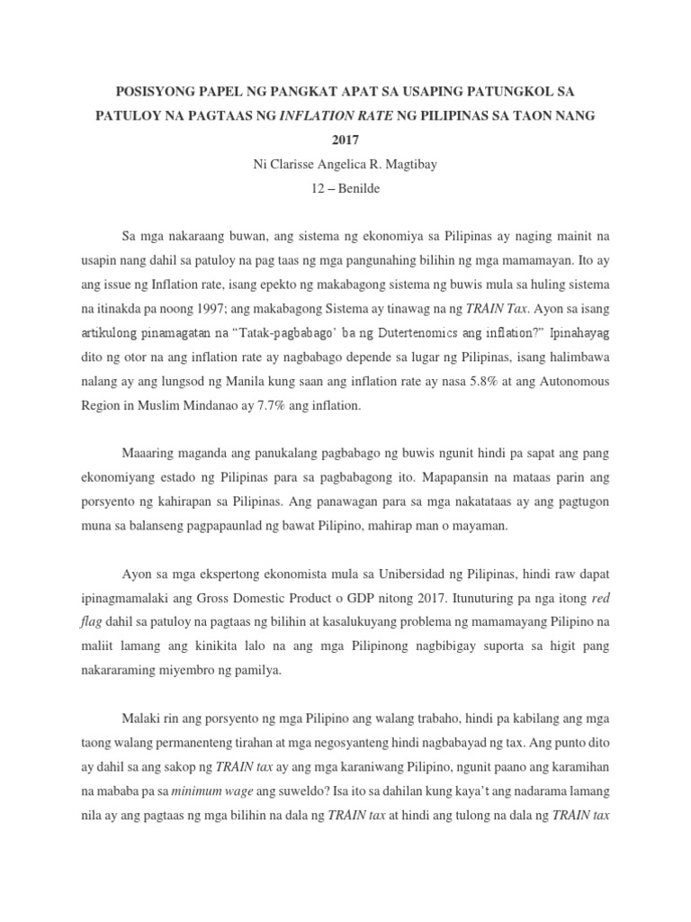 Pdf Halimbawa Ng Posisyong Papel Anne Morales Academia Edu