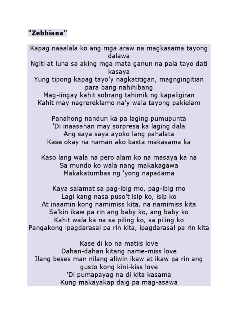 Zebbiana Zebby Ikaw Pa Rin Ang Baby Ko by Skusta Clee Song Lyrics Video Lyrics Cover. Sa mundo ko wala nang makakagawa. Baby ko kumusta ka na.