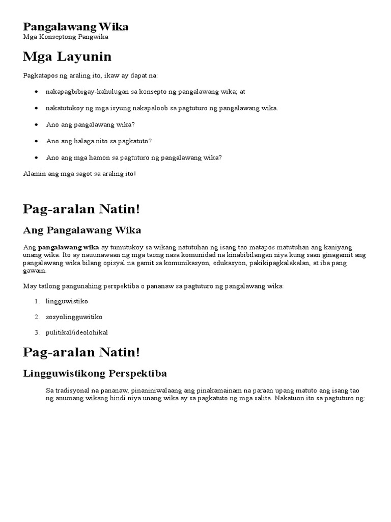 Kahulugan Ng Pangalawang Wika Halimbawa