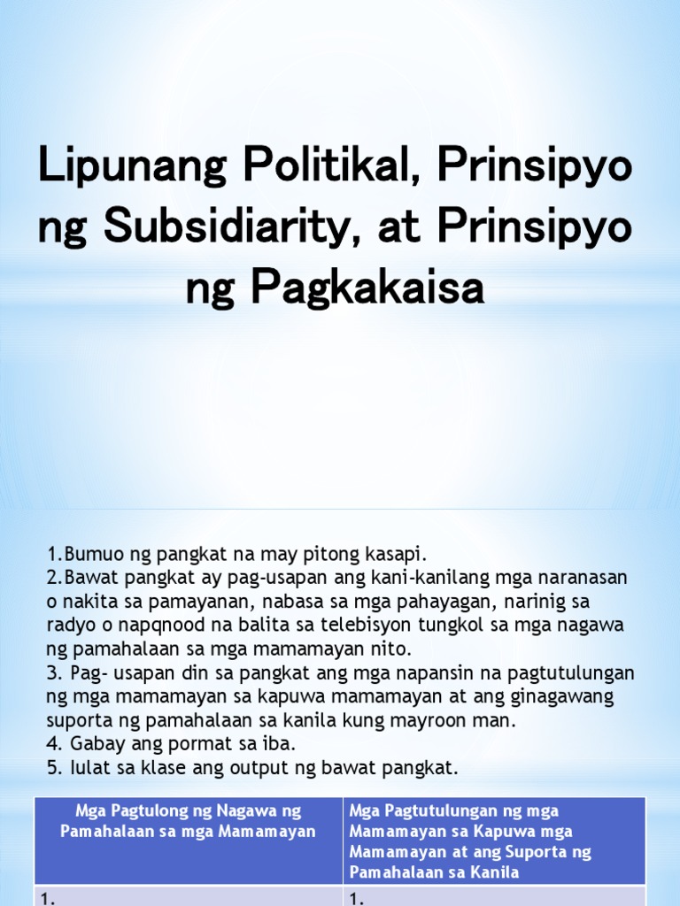 Answers 1nakakapag desisyon kung ano ang rehiyon na nais naten2pantay pantay walang mahirap o mayaman ang pinipili para sa hustisya3kalayaan na di natin naranasan noong panahon ng mga enpañol at hapon1pa. Pagkakaroon ng Livelihood program. Department of Social Welfare and Development DSWD Ito ang namamahala sa mga programa ng pamahalaan para sa paglilingkod sa lipunan lalo na sa mahirap.
