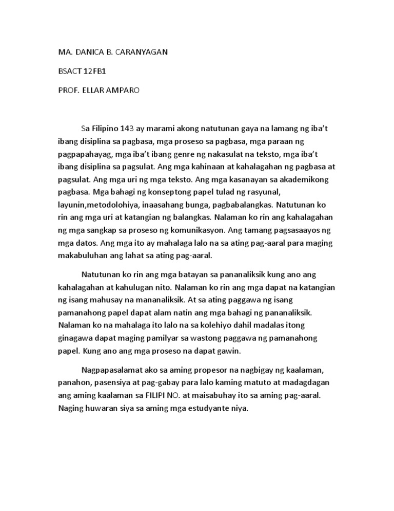 Madaming bagay akong natutunan sa asignaturang Filipino 7 o ang Pagbasa sa Ibat-ibang Disiplina. Akala ko simple lang ang Filipino ngunit di pala iyon totoo.