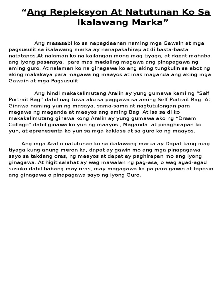 Ang Repleksyon At Mga Natutunan Ko Sa Ikalawang Marka Pdf