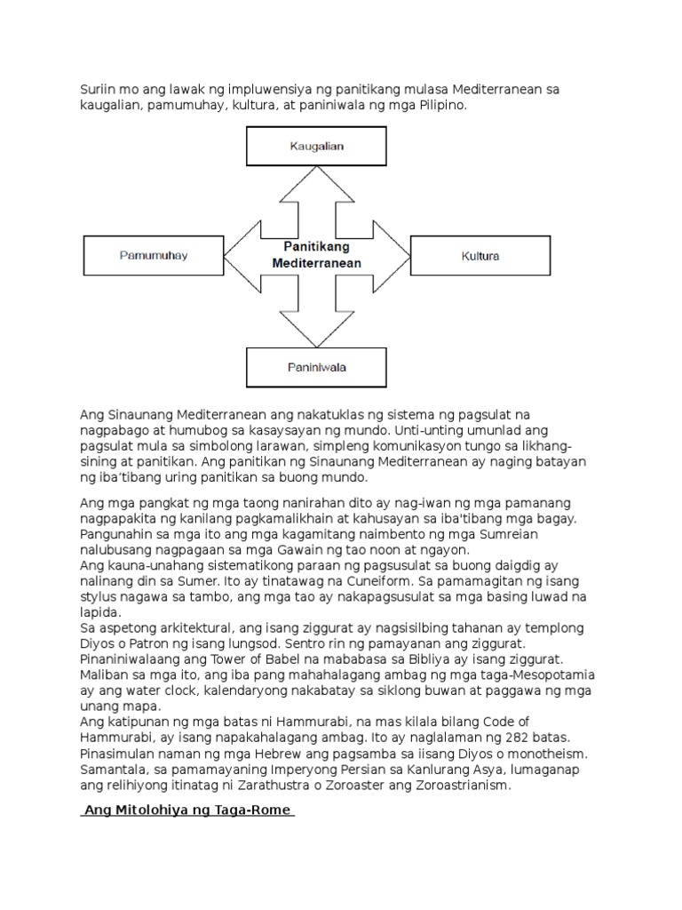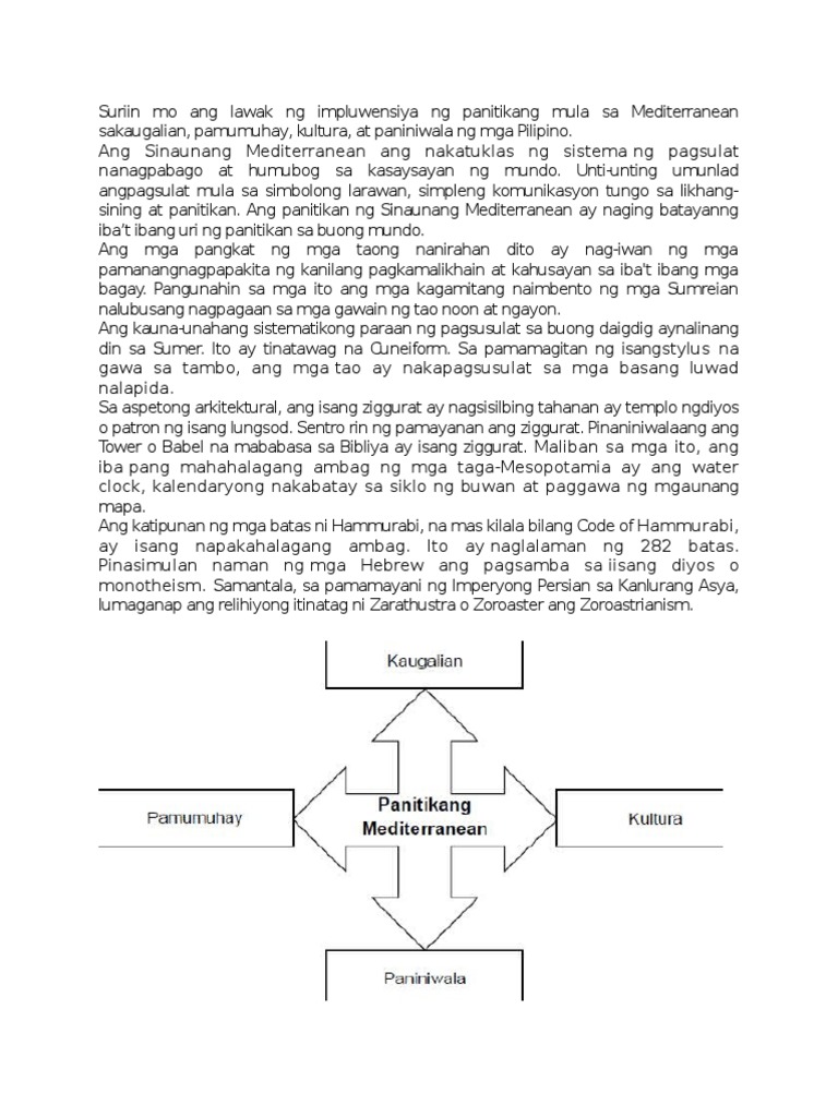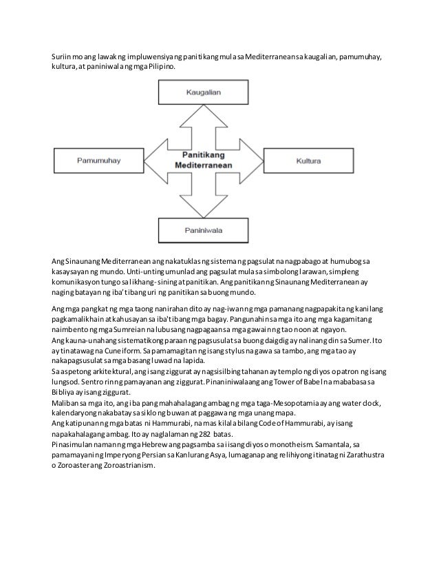 She has gone on to. Ayon sa aking nabasa ang Mediterranean ay matatagpuan sa sentro ng kabihasnan na kung saan ang kanilang pangunahing hanapbuhay o pinagkukunang yaman ay ang pagsasaka. Ito ay dahil sa kadahilanang magkaiba ang naging pinagdaanan at prinsipyo ng bawat lugar.
